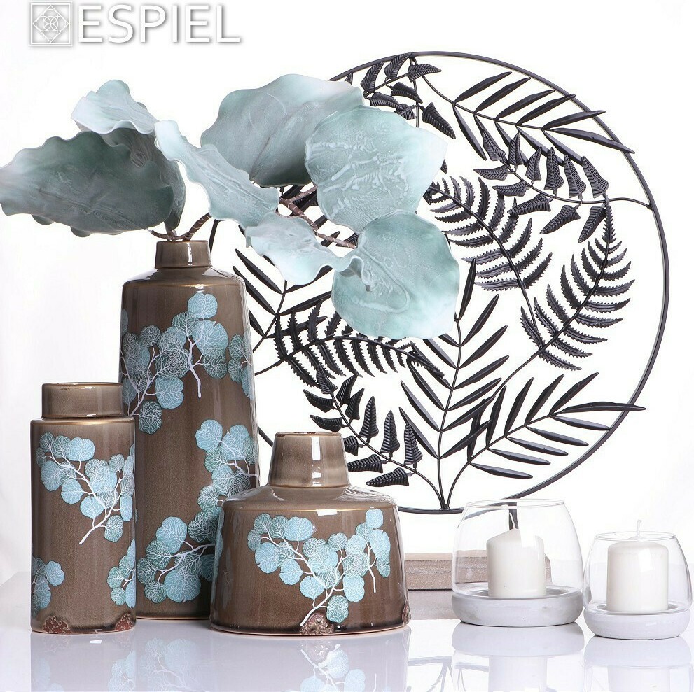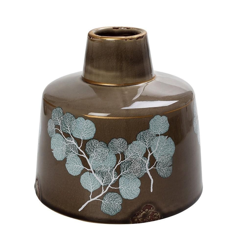 Κεραμικό βάζο σε λαδί απόχρωση με βεραμάν διακοσμητικά φύλλα.