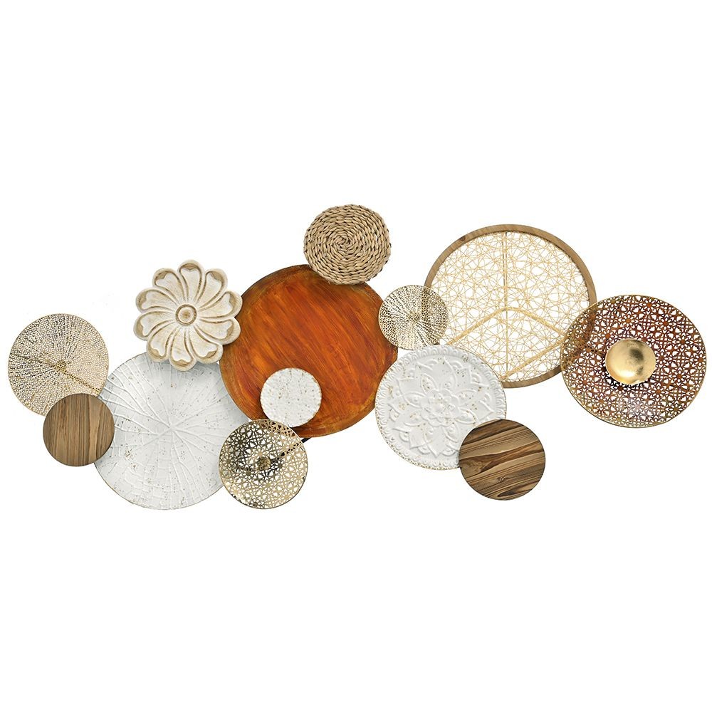 Μεταλλική  διακοσμητική σύνθεση  τοίχου με σχέδια κύκλων σε διαφορετικά επίπεδα και μπέζ καφέ κρεμ και μπρονζέ τόνους που θα κάνει τη διαφορά στο χώρο σας