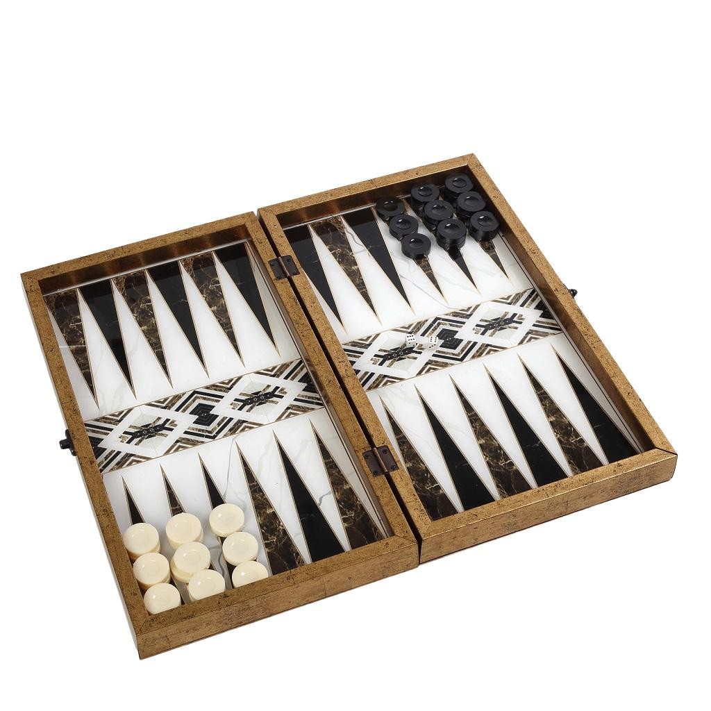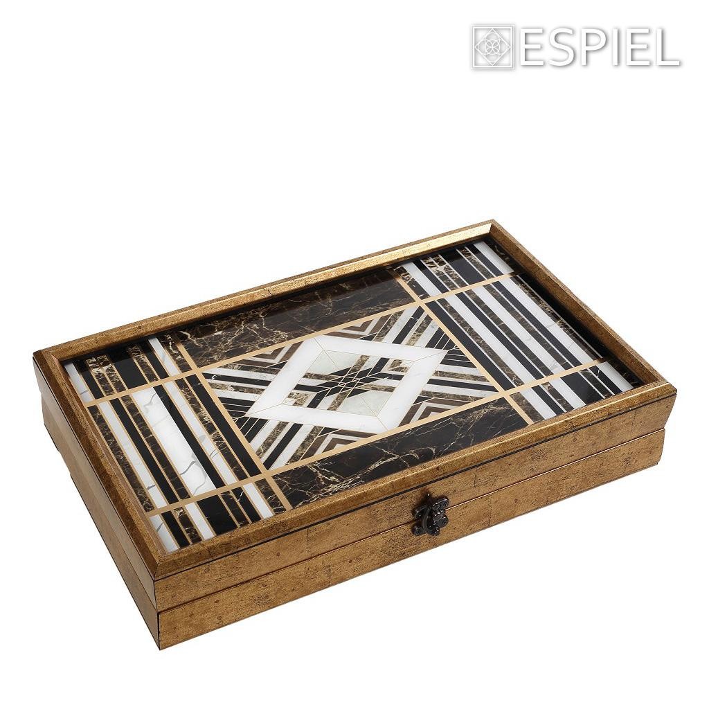 Τάβλι με γεωμετρικά σχέδια απο γυαλιστερή πολυρεζίνη μοιάζει με φίλντισι σε ιδιαίτερο ξύλινο κουτί