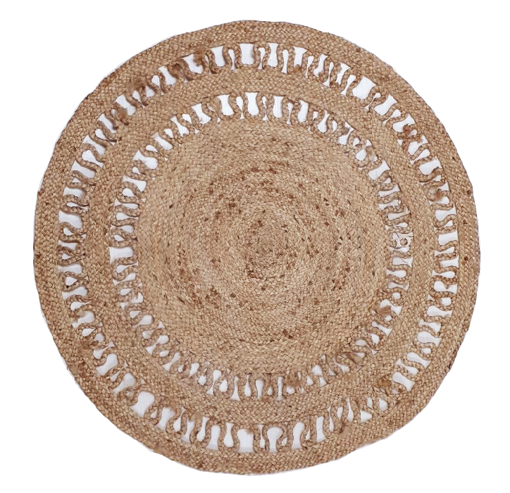 Εντυπωσιακό στρογγυλό boho style χαλί σε διάμετρο 120 εκατ. πλεγμένο με παραδοσιακές τεχνικές. Τα υλικά που χρησιμοποιούνται είναι 100% ίνες του φυτού γιούτα. Ταιριάζει σε σπίτια με μοντέρνα διακόσμηση και δίνει ένα μινιμαλιστικό ρουστίκ ύφος!