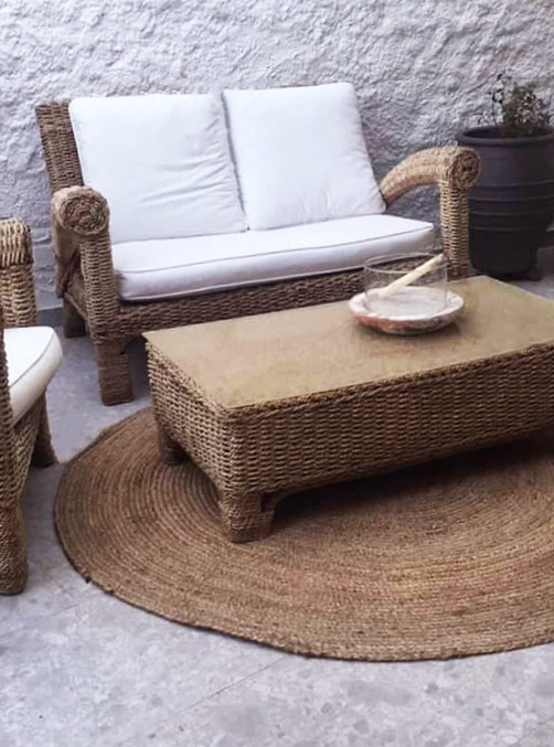 Πλεκτό boho οικολογικό χαλάκι σε φυσικό χρώμα  μπεζ , από 100% ίνες του φυτού γιούτα