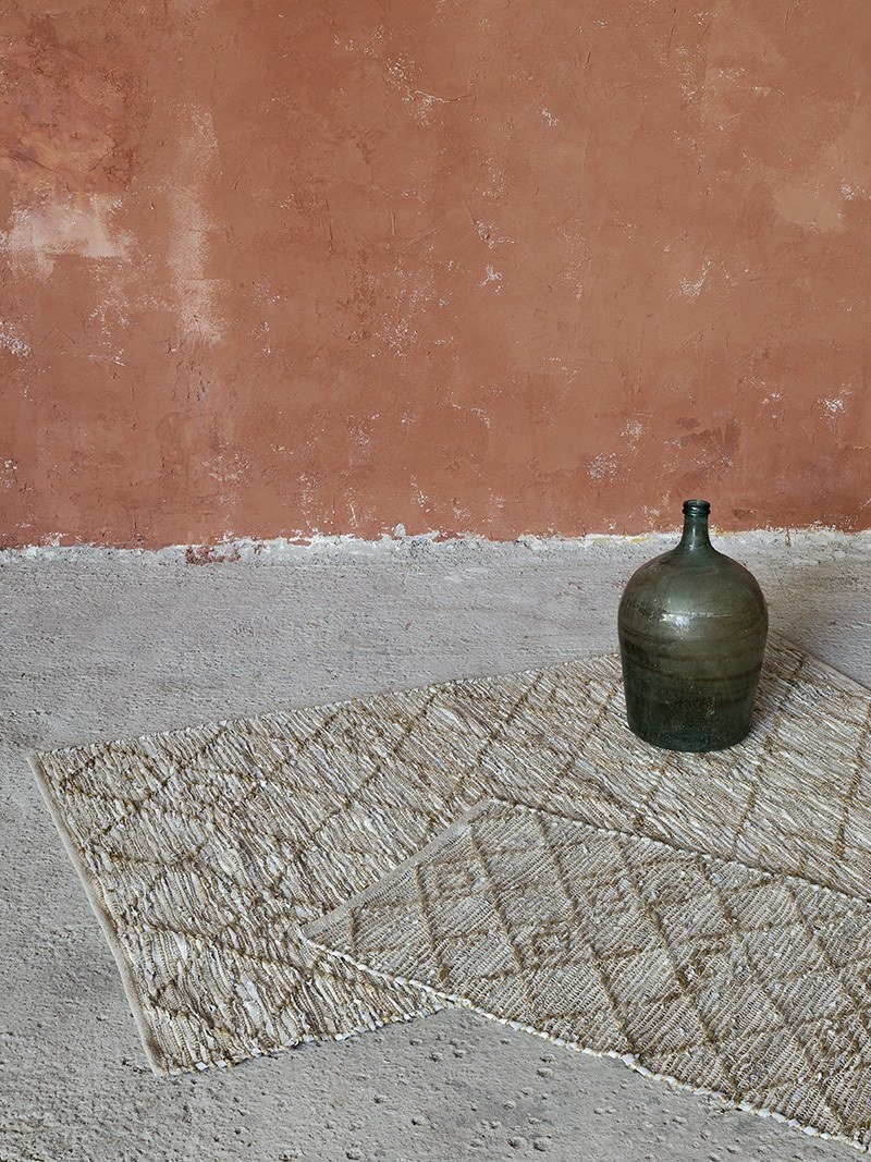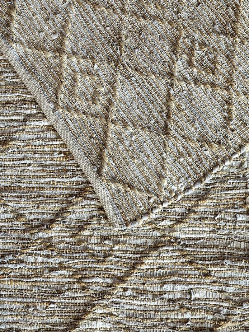 Χαλί με φυσική σύνθεση από δέρμα jute και βαμβάκι. Ένα μαλακό, οικολογικό χαλί χωρίς υπόστρωμα, με χαμηλό πέλος. Είναι κατασκευασμένο από δέρμα, φυσικές ίνες βαμβακιού και jute (γιούτα) που χαρακτηρίζονται από απαλότητα και αντοχή. Είναι φιλικό προς το δέρμα και τα κατοικίδια και εύκολο στην καθαριότητα, χωρίς να χρειάζεται ιδιαίτερη φροντίδα. Ιδανικό για τους χώρους των υπνοδωματίων και του καθιστικού όλες τις εποχές του χρόνου.