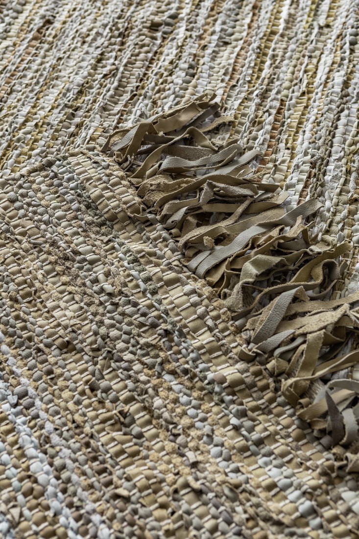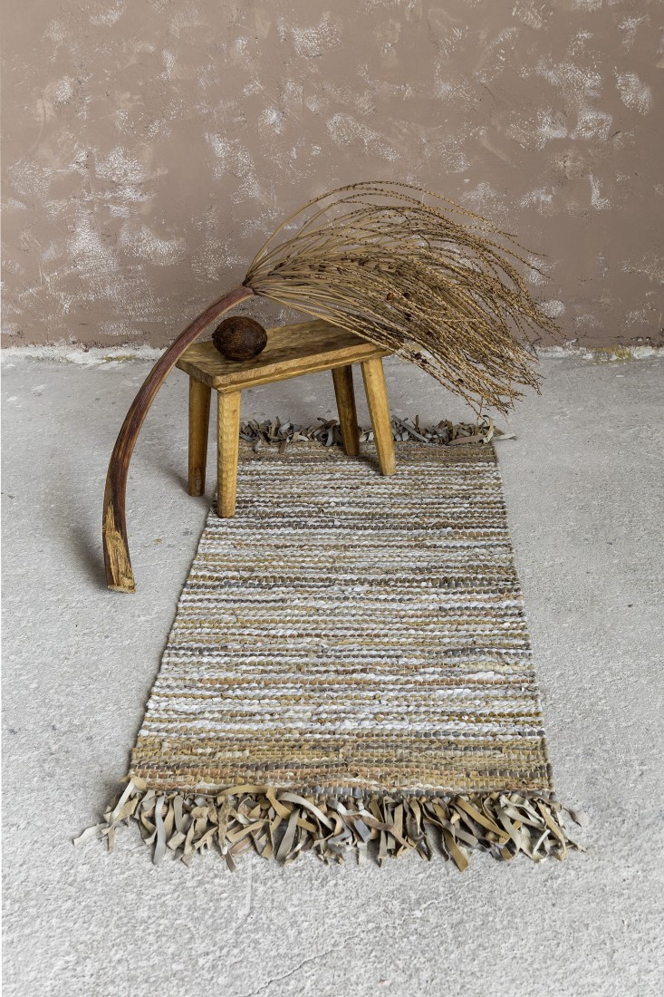 Χαλί από 90% δέρμα και 10% βαμβάκι. Ένα καλαίσθητο χαλί εξαιρετικά ανθεκτικό στον χρόνο χάρη στη δερμάτινη σύνθεση, στο χαμηλό πέλος και στη σφιχτή πλέξη του. Είναι ιδανικό για να το τοποθετήσετε σε περάσματα και πολυσύχναστους χώρους του σπιτιού. Θα παραμείνει στο σπίτι σας για πολλά χρόνια.