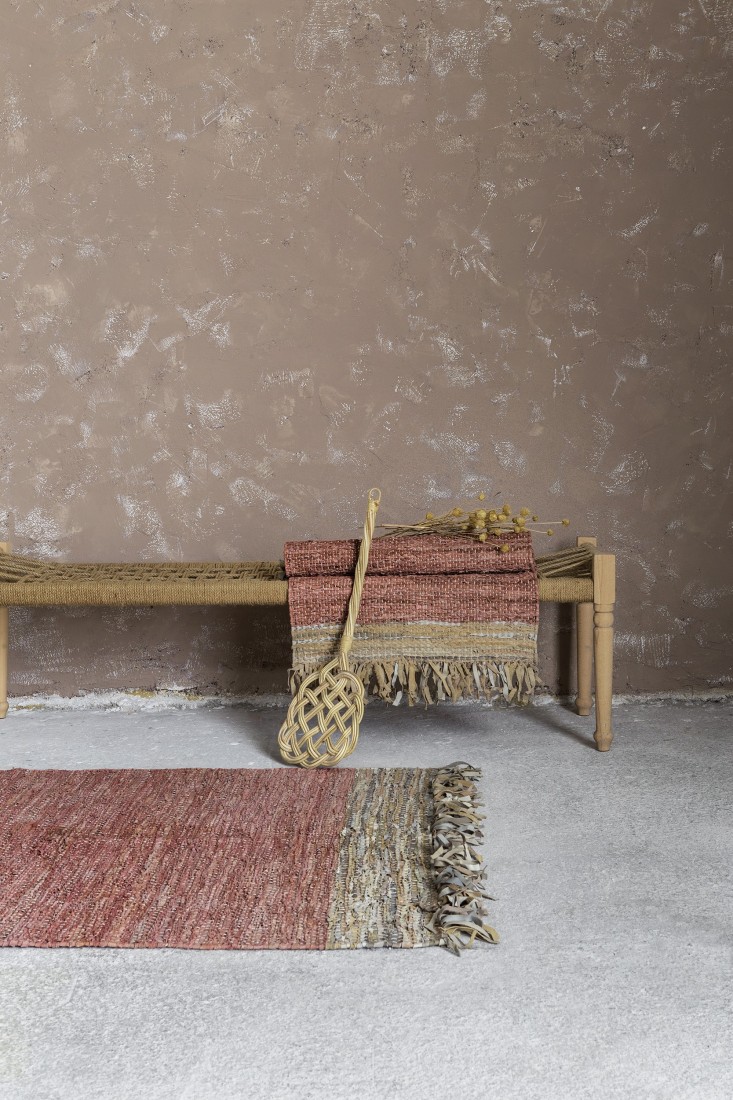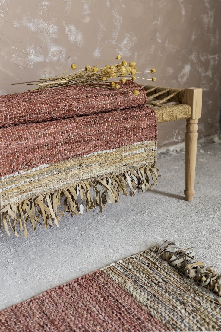 Το δερμάτινο χαλί Ardit Terracotta έχει γήινο κεραμιδί χρώμα στο σώμα ενώ το τελείωμά του είναι σε αποχρώσεις του μπεζ. Η πλέξη του δημιουργεί ξεχωριστό σχέδιο και κάνει το κάθε χαλί μοναδικό. Έχει υπέροχη υφή και όμορφο τελείωμα με κρόσσια που προσθέτει μια διακοσμητική πινελιά στο σχέδιό του. Οι ουδέτεροι, γήινοι τόνοι του συνδυάζονται αρμονικά με όλα τα χρώματα και προσφέρουν ελευθερία επιλογών στη διακόσμηση του σπιτιού σας. Προσφέρεται σε τρεις διαστάσεις για να επιλέξετε εκείνη που ταιριάζει στον δικό σας χώρο.