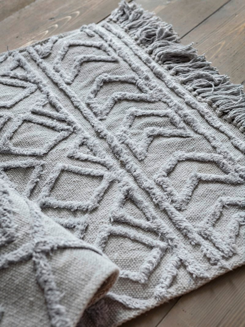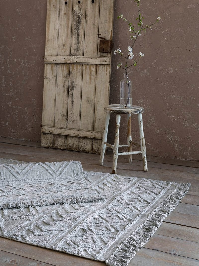 Χαλί βαμβακερό πολύ απαλό, με ανάγλυφη ύφανση. Χάρη στη σύνθεσή του από φυσικό βαμβάκι είναι αντιστατικό, υποαλλεργικό και πολύ ανθεκτικό στο χρόνο. Ιδανικό για να ζεστάνει το σπίτι τους φθινοπωρινούς και τους χειμερινούς μήνες του έτους.