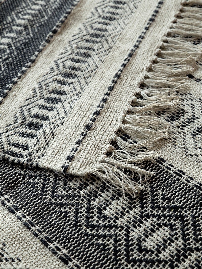 Το χαλί Aidan έχει υπέροχο ethnic σχέδιο και τελείωμα με κρόσσια για να δώσει ξεχωριστό χαρακτήρα στον χώρο. Ο κλασικός συνδυασμός του μαύρου με το εκρού χρώμα ταιριάζει εύκολα στο σπίτι και φέρνει την πιο σύγχρονη τάση της μόδας.