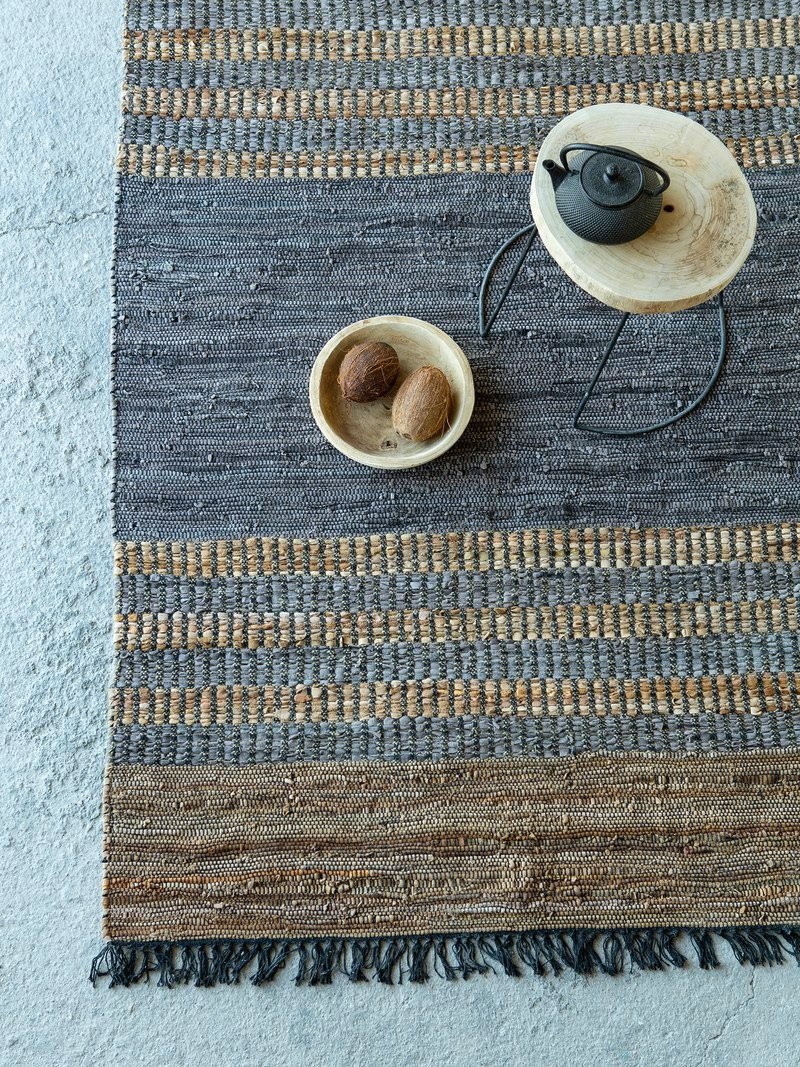 Χαλί χειροποίητο από 85% δέρμα και 15% ίνες κάνναβης. Ένα χαλί που έρχεται στο σπίτι για να μείνει για πάντα. Χάρη στη σύνθεση του είναι από τα πιο ανθεκτικά που μπορείτε να επιλέξετε. Έχει χαμηλό πέλος και είναι ιδανικό για πολυσύχναστα δωμάτια και περάσματα μιας και έχει υψηλή αντοχή στη συχνή, καθημερινή χρήση όλο το χρόνο.