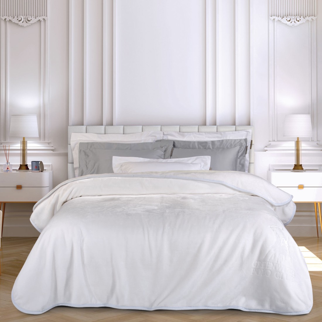 3470 ΚΟΥΒΕΡΤΑ VELOUR ΥΠΕΡΔΙΠΛΗ λευκη GREENWICH POLO CLUB