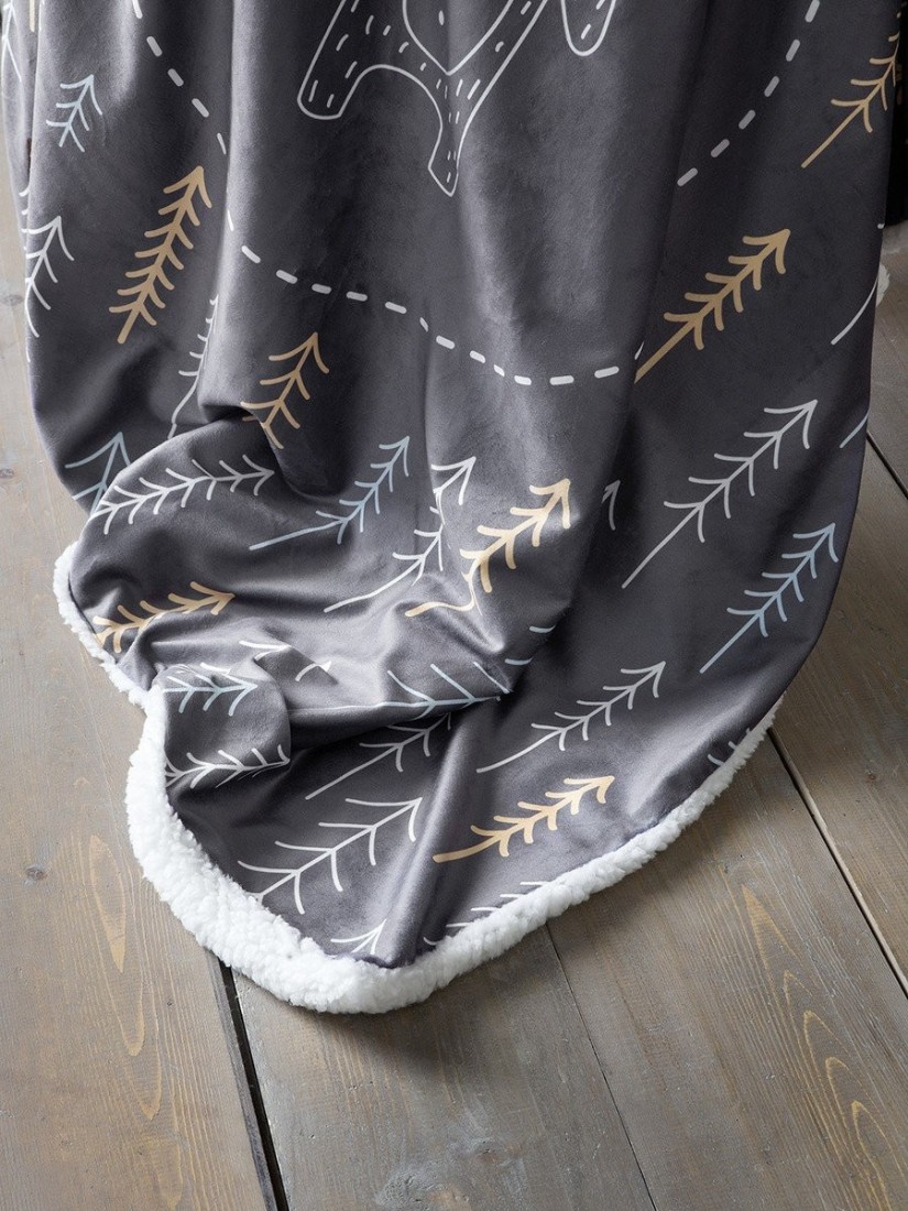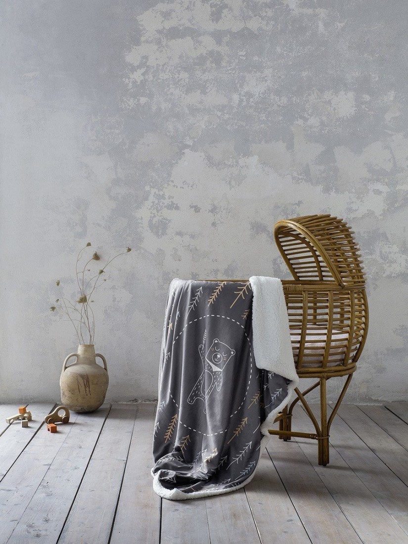 Η βρεφική κουβέρτα Tiddles έχει πρωτότυπο τυπωτό σχέδιο με αρκουδάκι που θυμίζει ινδιάνικο παραμύθι και γκρι χρώμα που θα φέρει μια μοντέρνα πινελιά στο βρεφικό δωμάτιο. Μπορεί να ταιριάξει όμορφα με πολλές και διαφορετικές αποχρώσεις. O συνδυασμός της βελούδινης υφής με τη χνουδωτή σέρπα προσφέρει αίσθηση οικειότητας και θαλπωρής που θα κάνει το βρεφικό δωμάτιο ακόμα πιο ζεστό, χαρίζοντάς του ξεχωριστή αισθητική.