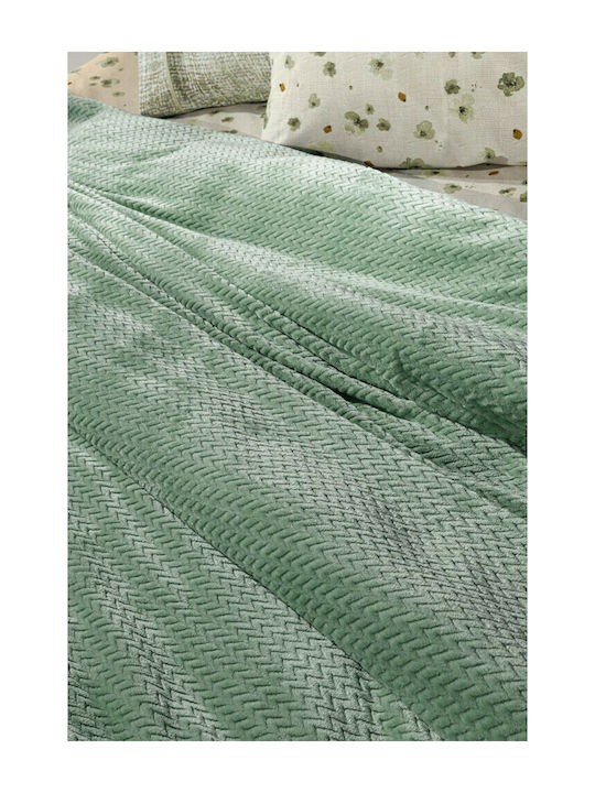 Kουβέρτα fleece μονή σε πράσινη απόχρωση και ανάγλυφο σχέδιο της εταιρίας Guy Laroche. Το ύφασμα είναι από 100% microfiber που χαρίζει υπέροχη υφή και απαλότητα. Ιδανική για τους φθινοπωρινούς μήνες.