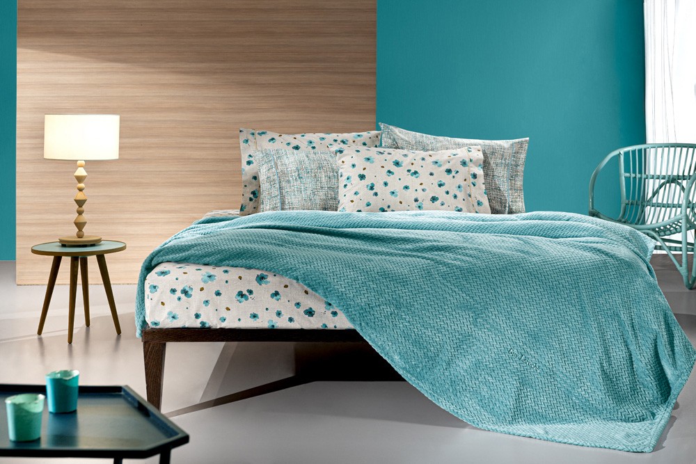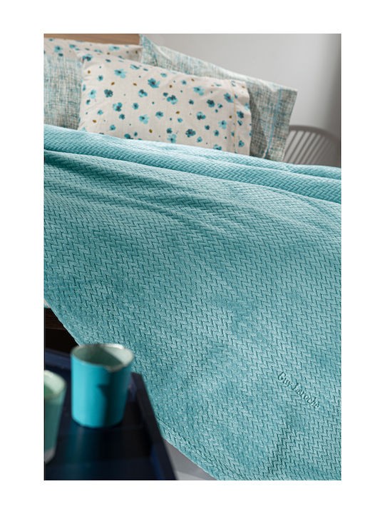 Kουβέρτα fleece μονή σε πετρόλ απόχρωση και ανάγλυφο σχέδιο της εταιρίας Guy Laroche. Το ύφασμα είναι από 100% microfiber που χαρίζει υπέροχη υφή και απαλότητα. Ιδανική για τους φθινοπωρινούς μήνες.