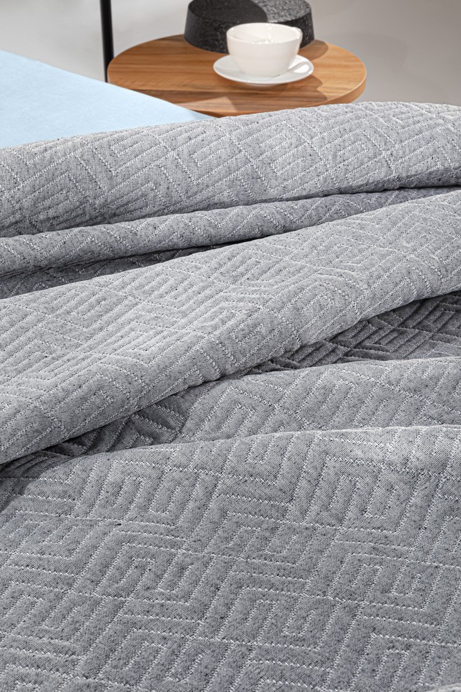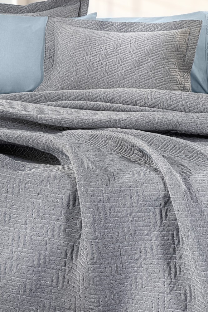 ανάγλυφη ζακάρ κουβέρτα από την εταιρεία Guy Laroche, κατάλληλη για υπέρδιπλο κρεβάτι. Είναι ανθεκτική, ελαφριά και ιδανική επιλογή για τους ανοιξιάτικους και τους καλοκαιρινούς μήνες του έτους.