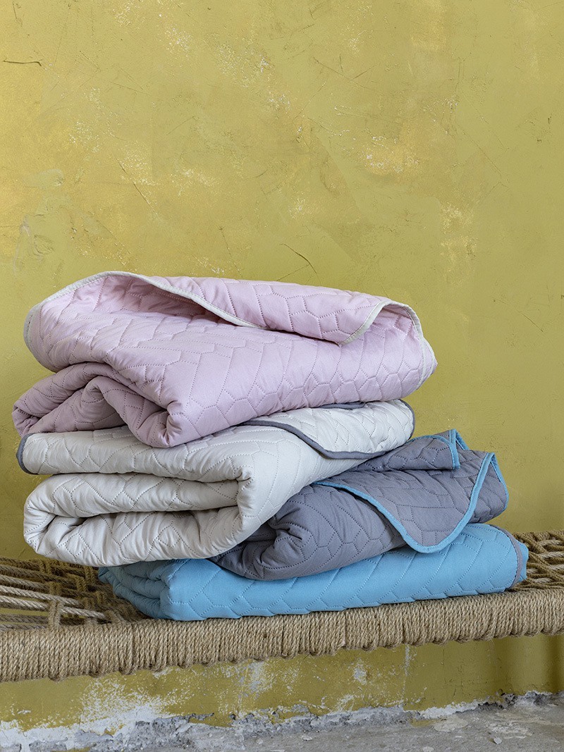 Kουβερλί Novo από 100% microfiber, θα χαρίσει άνεση και ζεστασιά στις ανοιξιάτικες νύχτες, διακοσμώντας παράλληλα το υπνοδωμάτιο. Όπως όλα τα λευκά είδη με ύφανση microfiber, το κουβερλί Novo έχει ως χαρακτηριστικό γνώρισμα τα εξαιρετικά λεπτά νήματα που είναι ίσα ή λεπτότερα του ενός denier. Με αυτά τα νήματα ή μικροίνες δημιουργούνται πολύ πυκνές υφάνσεις που κάνουν το ύφασμά του ιδιαίτερα απαλό και μαλακό. Ταυτόχρονα όμως, παραμένει πολύ ανθεκτικό ώστε να αντέχει στον χρόνο και στις συχνές πλύσεις, χωρίς να χρειάζεται ιδιαίτερη φροντίδα.