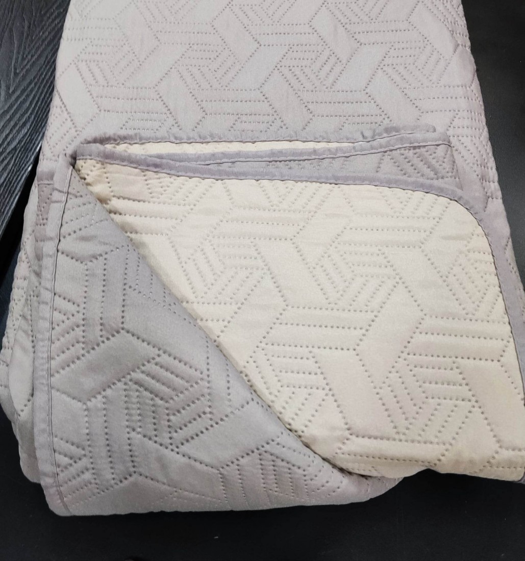 Το κουβερλί Geo- είναι διπλής όψης και συνδιάζει δ ύο ουδέτερα και διαχρονικά χρώματα. Η απόχρωση του ανοιχτού  καφέ της μόκας  από την μία πλευρά  αναδεικνύει την απλή, χαλαρή διακόσμηση, ενώ το χρώμα του σκούρου μπεζ  από την άλλη πλευρά μπορεί να συμμετέχει σε μια διακόσμηση με φρέσκες παστέλ αποχρώσεις. Και οι δύο πλευρές του μπορούν να συνδυαστούν εύκολα με τα χρώματα που θα επιλέξετε εσείς. Είναι μονόχρωμο και έχει γεωμετρικό, ανάγλυφο καπιτονάρισμα που τονίζει την ωραία υφή του και ταιριάζει πολύ εύκολα με κάθε στιλ διακόσμησης.