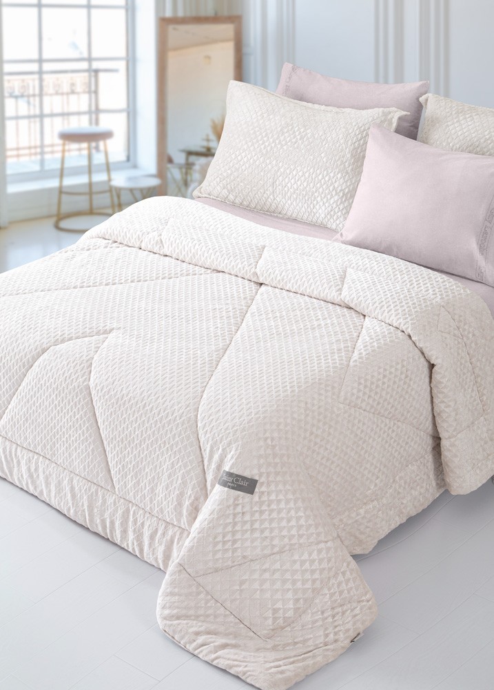 Το  κουβερτοπάπλωμα της εταιρείας SAINT CLAIR Paris είναι εξωτερικά κατασκευασμένο από microfiber, ένα συνθετικό υλικό (τεχνητές μικροΐνες) που επιτρέπει στο πάπλωμα να είναι ελαφρύ, ζεστό και αφράτο. Η διαφορά του κουβερτοπαπλώματος από τα κλασικά παπλώματα είναι ότι συνδυάζει τις ιδιότητες ενός παπλώματος και μίας κουβέρτας μαζί, προσφέροντας μία πιο μαλακή και ζεστή αίσθηση στον ύπνο.