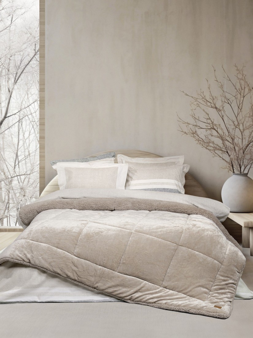 Ένα ζεστό και απαλό πάπλωμα συνδυασμένο με τη μαλακή, χνουδωτή υφή της κουβέρτας.
