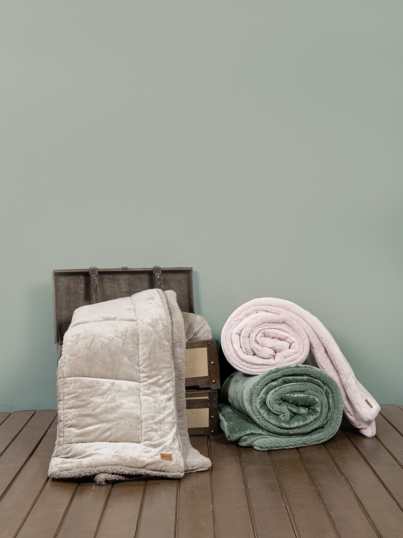 Ένα ζεστό και απαλό πάπλωμα συνδυασμένο με τη μαλακή, χνουδωτή υφή της κουβέρτας.