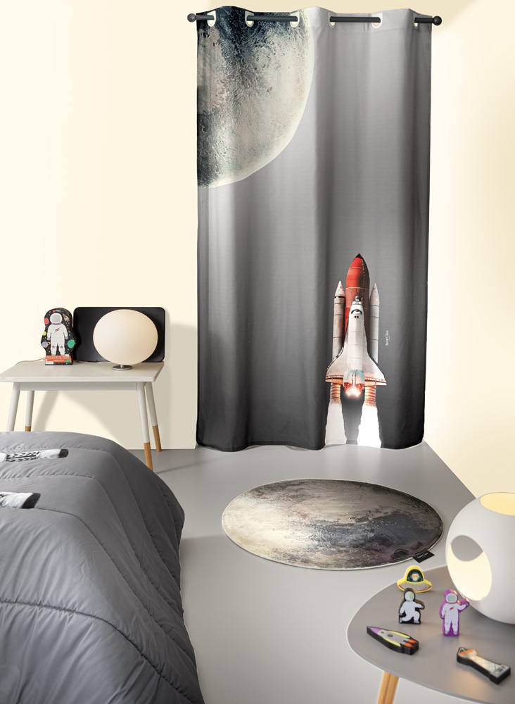 Για ένα μαγευτικό ταξίδι της παιδικής φαντασίας στον περιπετειώδη κόσμο του διαστήματος, σας προτείνουμε την Παιδική Κουρτίνα Space Suede. Φέρει εντυπωσιακό σχέδιο με έναν διαστημικό πύραυλο να απογειώνεται, όπως ακριβώς και η διακόσμηση του παιδικού δωματίου τοποθετώντας αυτήν την πανέμορφη κουρτίνα. Είναι κατασκευασμένη από άριστης ποιότητας microsuede ύφασμα και τυπωμένη με προηγμένα μέσα τεχνολογίας, που την καθιστούν πανέμορφη και ανθεκτική.