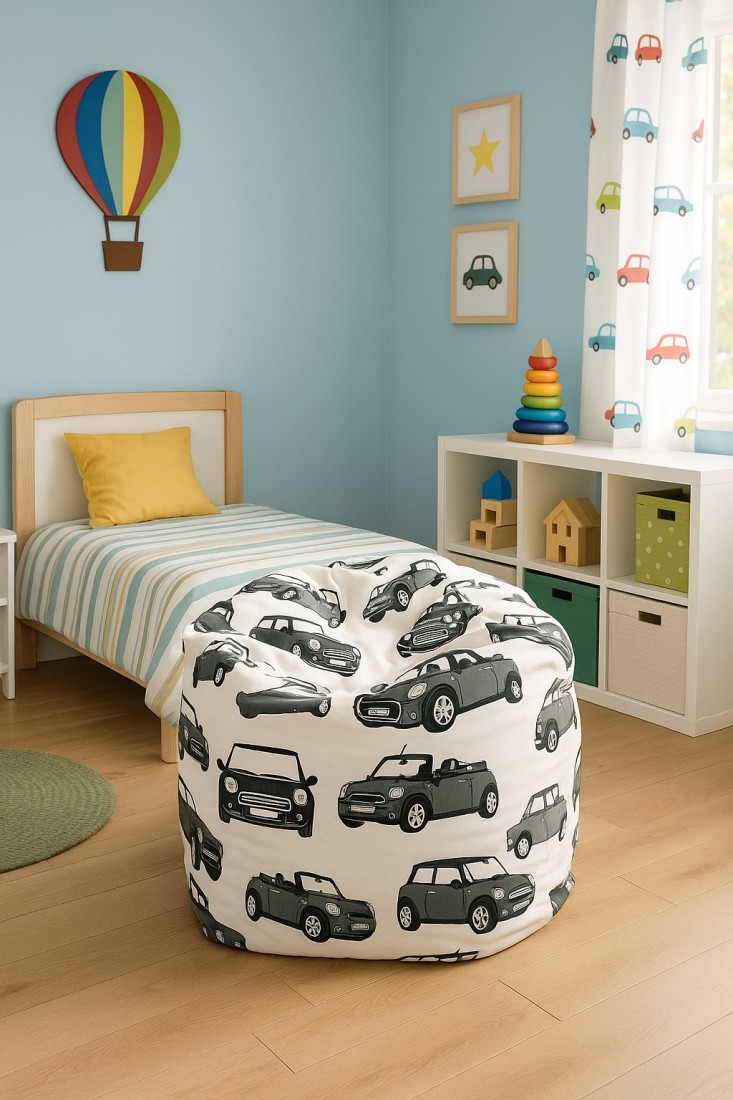 Δώστε χρώμα και στυλ στο παιδικό δωμάτιο με αυτό το μοναδικό πουφ, διακοσμημένο με σχέδια εμπνευσμένα από το κλασικό Mini Cooper!