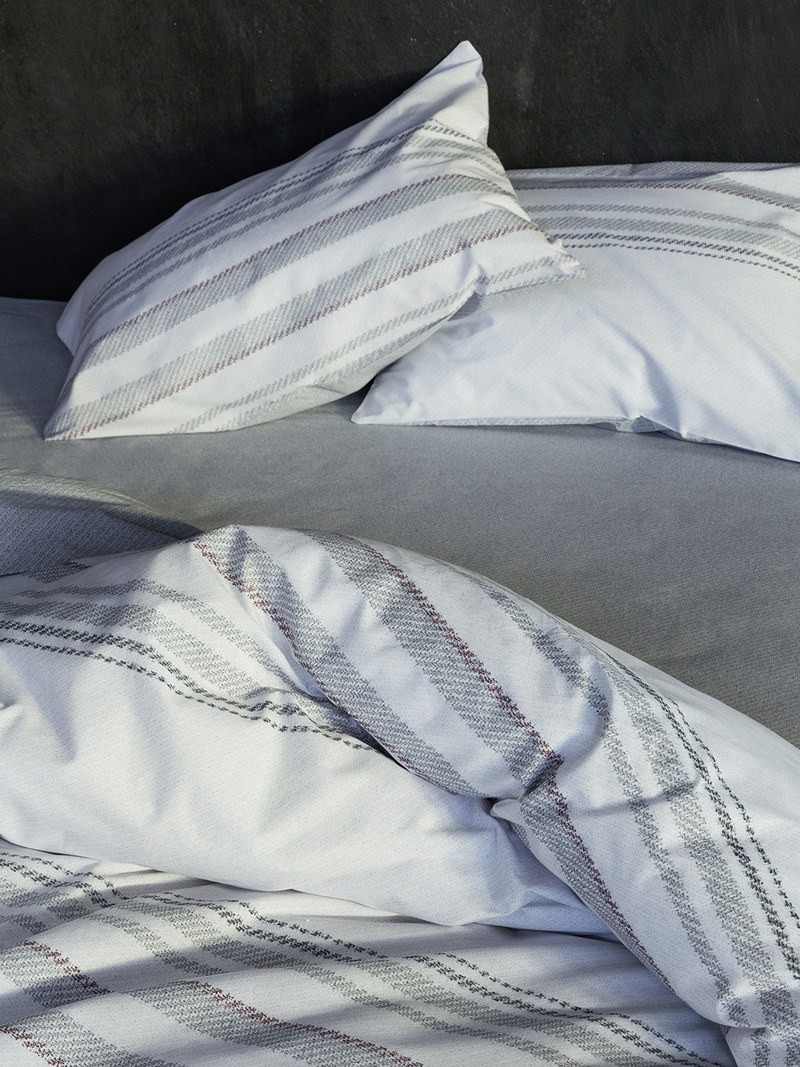 Το σετ μαξιλαροθήκες Level Gray έχουν διαχρονικό ριγέ γεωμετρικό μοτίβο στις μοντέρνες αποχρώσεις του γκρι πάνω σε εκρού βάση με μια πινελιά τερακότας, για να φωτίσει τον χώρο. Ταιριάζουν σε χώρους με μοντέρνα, αλλά και με κλασική διακόσμηση μιας και μπορούν να σταθούν ως το επίκεντρο της συνολικής αισθητικής του χώρου. Δώστε στο υπνοδωμάτιο σας προσωπικότητα με μια από τις πιο σύγχρονες τάσεις σε μια ανάλαφρη εκδοχή.
