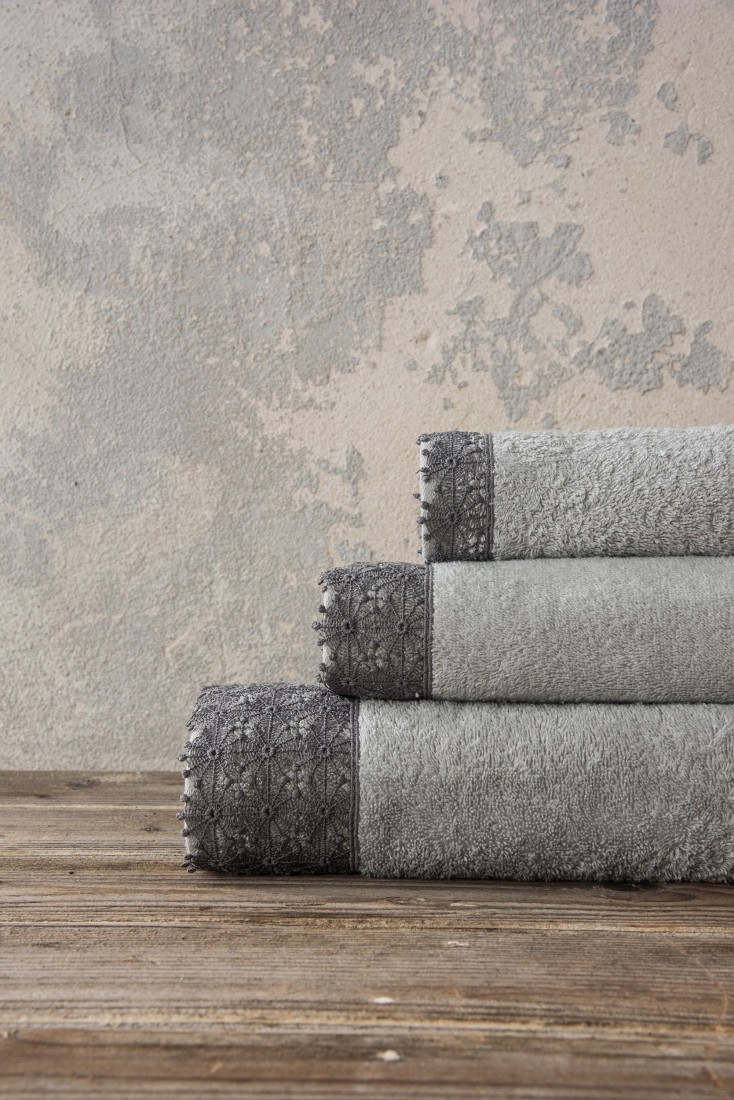 Η βαμβακερή πετσέτα Ingrid Gray έχει υπέροχο ανοιχτό γκρι χρώμα, φωτεινό και ουδέτερο που ταιριάζει με όλες τις αποχρώσεις. Είναι διακοσμημένη με μια υπέροχη τρέσα από δαντέλα που την κάνει να ξεχωρίζει. Η αντίθεση της σκουρόχρωμης δαντέλας με το ανοιχτό γκρι χρώμα της πετσέτας αναδεικνύει την αισθητική του χώρου και προσφέρει μοναδικό στιλ στο μπάνιο. Μια πετσέτα με ιδιαίτερο σχέδιο και εξαιρετική ποιότητα που θα λατρέψετε. Προσφέρεται σε 3 διαστάσεις, χεριών, προσώπου, μπάνιου και σε σετ τριών τεμαχίων. Συνδυάστε τις για μια ομοιόμορφη και αισθητικά αρμονική εικόνα στο μπάνιο σας.