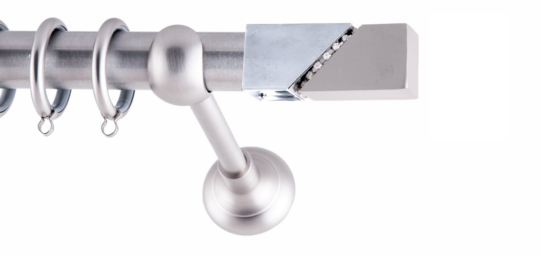 Μεταλλική Κουρτινόβεργα Φ25  Νίκελ ματ  με νίκελ μάτ   εξαρτήματα