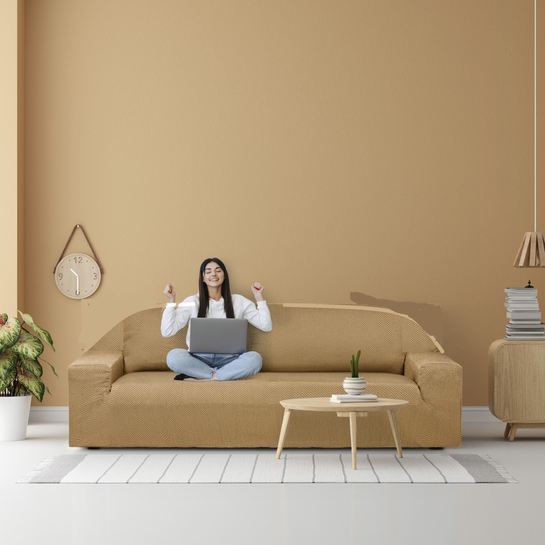 Ελαστικό Κάλυμμα Καναπέ & Πολυθρόνας Apollo 05 – Μελί/Μουσταρδί