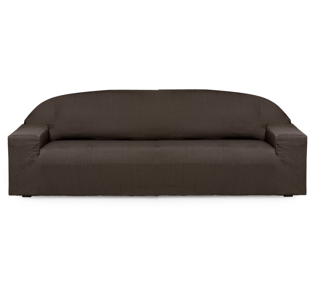 Κάλυμμα Καναπέ & Πολυθρόνας Λύκρα APOLLO καφέ με Οβάλ Πλάτη – Σχέδιο Ζικ Ζακ