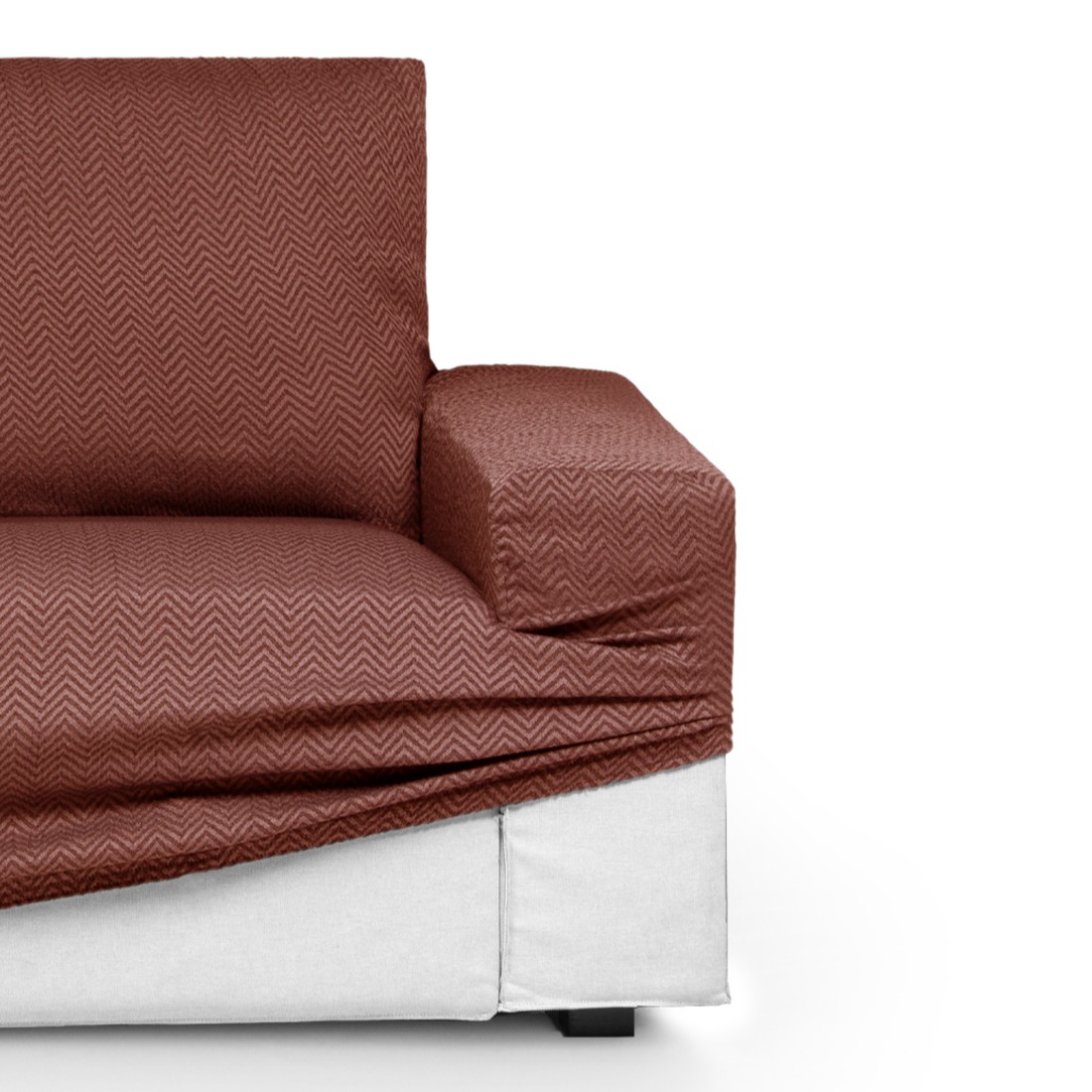 Ελαστικό κάλυμμα καναπέ & πολυθρόνας Apollo 09 σε βαθύ κεραμιδί χρώμα με ζικ-ζακ σχέδιο, κατάλληλο για καναπέδες με οβάλ πλάτη. Ιδανική λύση για άμεση ανανέωση και προστασία επίπλων.