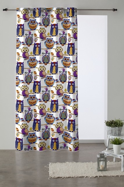 Έτοιμη κουρτίνα με τρούκς  (150x260) με ψηφιακή εκτύπωση για παιδικό ή εφηβικό δωμάτιο σχέδιο κουκουβάγια  φέρτε την άνοιξη στο δωμάτιο