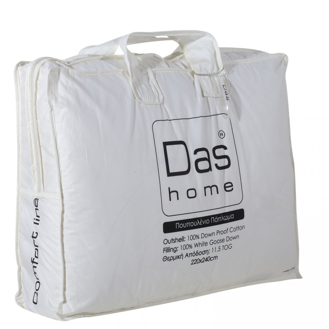 Πουπουλένιο πάπλωμα της σειράς Comfort. Το κάλυμμα του είναι από υποαλλεργικό βαμβακερό ύφασμα ειδικά επεξεργασμένο για την συγκράτηση του υλικού γεμίσματος, ενώ το εσωτερικό του αποτελείται από πούπουλο νεοσσού χήνας. Ιδιαίτερα "αφράτο", απαλό και ανθεκτικό στη χρήση. Διατίθεται σε διάσταση 220Χ240. Ύφασμα: 100% Βαμβάκι. Γέμιση: 100% πούπουλο νεοσσού χήνας. Θερμότητα: 11.5 Tog. Πλύσιμο στους 40°C. Όχι σιδέρωμα. Όχι χρήση χλωρίου ή λευκαντικού. Στεγνό καθάρισμα.