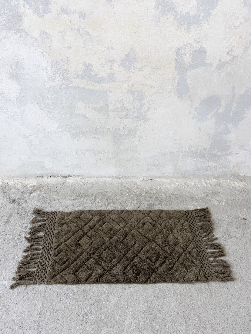 To πατάκι μπάνιου Lucia Olive σε σκούρο πράσινο χρώμα της ελιάς, έχει υπέροχο ανάγλυφο σχέδιο σε σχήμα διαμαντιού και διακοσμητική πλέξη με κρόσσια στο φινίρισμα. Η πολυτελής υφή και αίσθηση που προσφέρει θα αναβαθμίσει τον χώρο του μπάνιου προσφέροντας ταυτόχρονα μια διακριτική boho πινελιά. Ιδανική επιλογή για όσους θέλουν ένα μονόχρωμο πατάκι, χωρίς όμως να θυσιάσουν το design. Είναι σημαντικό να σκουπίζετε τακτικά το πατάκι σας για να απομακρύνετε τη σκόνη, αλλά προσέξτε ιδιαίτερα όταν σκουπίζετε με την ηλεκτρική σκούπα τις άκρες του για να αποφύγετε τυχόν ξεφτίσματα στα κρόσσια. Μέγιστη θερμοκρασία πλυσίματος 30ο C - Απαγορεύεται η χλωρίνη - Μην χρησιμοποιείτε στεγνωτήριο - Δεν θέλει σιδέρωμα