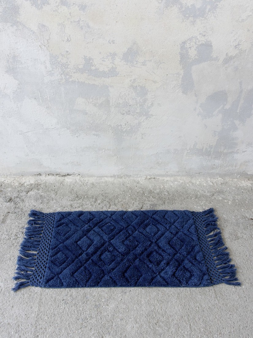 To πατάκι μπάνιου Lucia σε βαθύ μπλε χρώμα έχει υπέροχο ανάγλυφο σχέδιο σε σχήμα διαμαντιού και διακοσμητική πλέξη με κρόσσια στο φινίρισμα. Η πολυτελής υφή και αίσθηση που προσφέρει θα αναβαθμίσει τον χώρο του μπάνιου προσφέροντας ταυτόχρονα μια διακριτική boho πινελιά. Ιδανική επιλογή για όσους θέλουν ένα μονόχρωμο πατάκι, χωρίς όμως να θυσιάσουν το design. Είναι σημαντικό να σκουπίζετε τακτικά το πατάκι σας για να απομακρύνετε τη σκόνη, αλλά προσέξτε ιδιαίτερα όταν σκουπίζετε με την ηλεκτρική σκούπα τις άκρες του για να αποφύγετε τυχόν ξεφτίσματα στα κρόσσια. Μέγιστη θερμοκρασία πλυσίματος 30ο C - Απαγορεύεται η χλωρίνη - Μην χρησιμοποιείτε στεγνωτήριο - Δεν θέλει σιδέρωμα