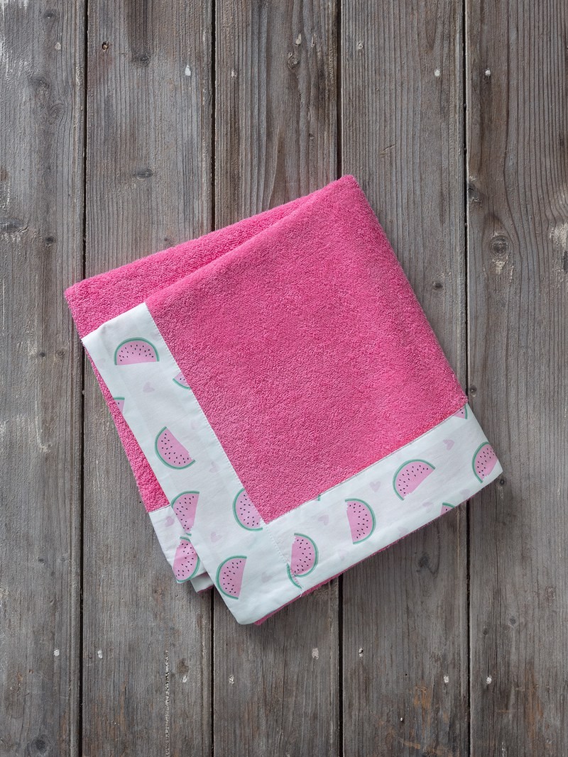 Η παιδική πετσέτα θαλάσσης Popsugar έχει ζωηρό φούξια χρώμα και είναι διακοσμημένη περιμετρικά με digital print φάσα με καρπουζάκια σε ροζ φόντο. Μια πετσέτα που θα αγαπήσουν τα παιδιά και θα τα συντροφεύσει στις καλοκαιρινές τους περιπέτειες.