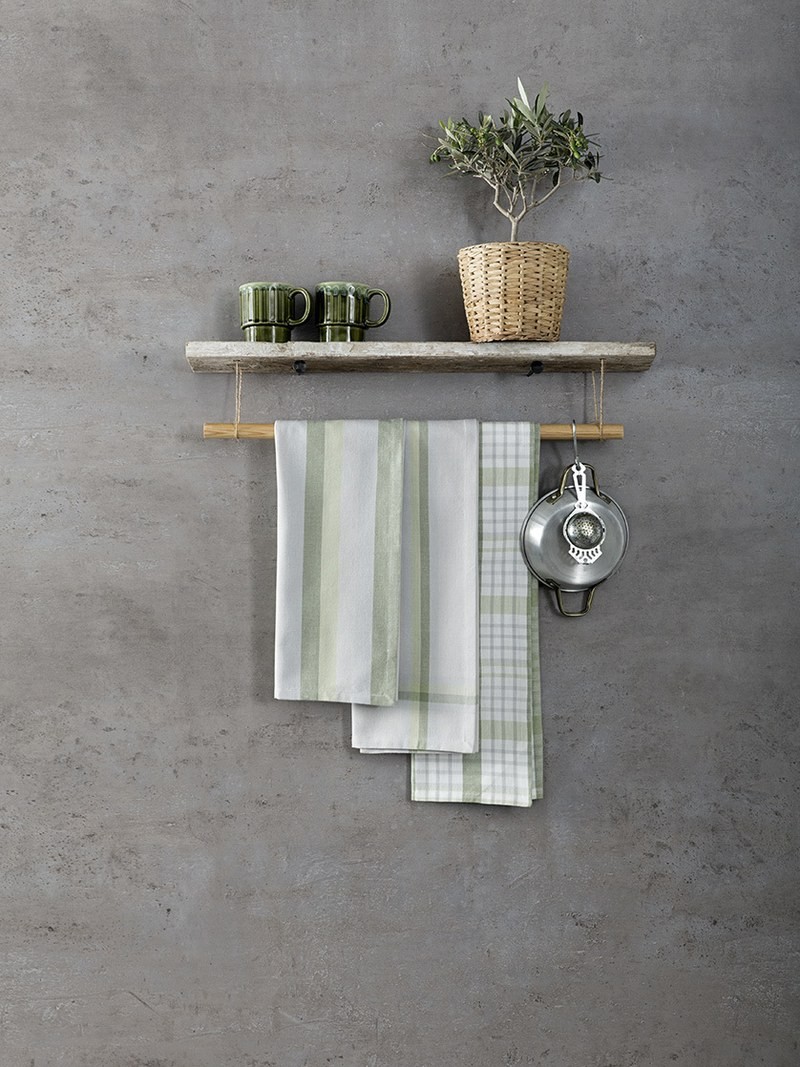 Η πετσέτα κουζίνας Dainty φέρνει στο σπίτι μας τον διαχρονικό χρωματικό συνδυασμό του πράσινου με το γκρι σε ένα διακριτικό ριγέ σχέδιο. Ταιριάζει αμέσως στην κουζίνα σαν μια διακριτική χρωματιστή πινελιά. Συνδυάζει το κλασικό με το μοντέρνο στιλ για να προσαρμοστεί αρμονικά στην αισθητική του χώρου.