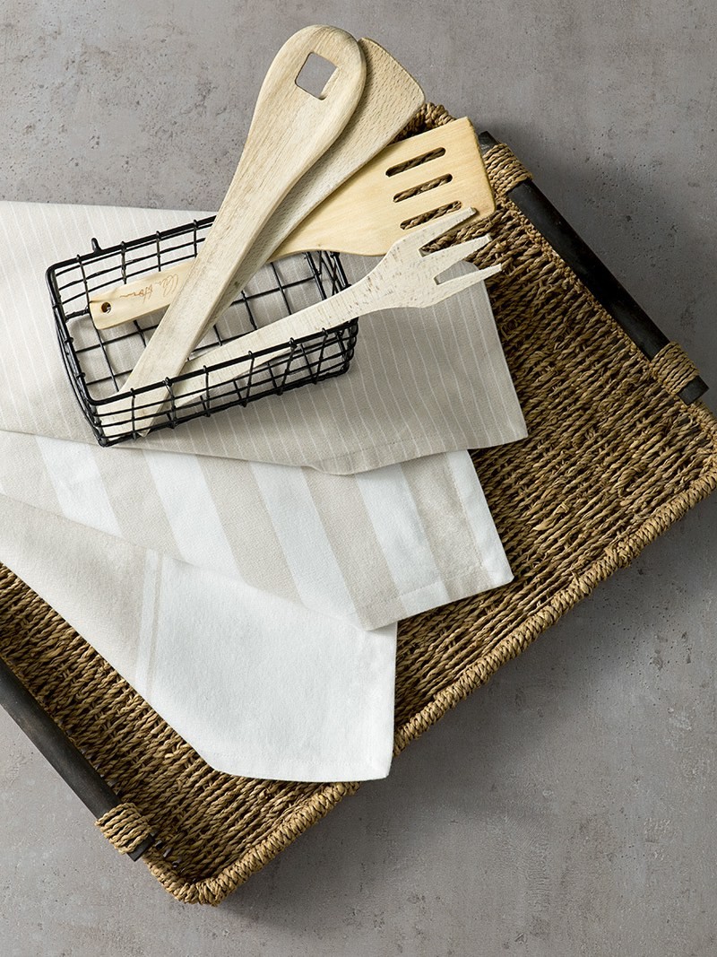 Πετσέτα κουζίνας από 100% βαμβακερά νήματα. Είναι πολύ απαλή, ιδανική για το σκούπισμα των ποτηριών και των πιάτων, καθώς δεν αφήνει χνούδι. Το βαμβακερό της ύφασμα είναι πολύ απορροφητικό και στεγνώνει γρήγορα. Είναι κατάλληλη για καθημερινή χρήση στην κουζίνα σαν ποτηρόπανο ή σαν πετσέτα. Χάρη στη σύνθεσή της από φυσικό βαμβάκι yarn dyed έχει μεγάλη αντοχή στο χρόνο και διατηρεί το χρώμα και το σχήμα της ακόμα και μετά από πολλές πλύσεις, χωρίς να απαιτεί ιδιαίτερη φροντίδα.