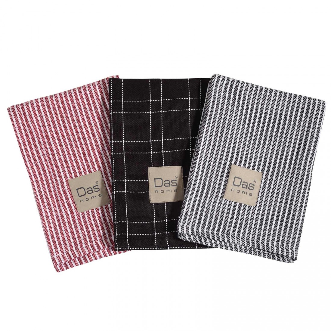 Ποτηρόπανα κουζίνας Das home της σειράς kitchen line. Το σετ αποτελείται από 3 τεμάχια διαστάσεων 50Χ70cm, σε ύφασμα από 100% βαμβάκι, ιδιαίτερα απορροφητικά και ανθεκτικά στη χρήση. Das home...makes your house a home! Πλύσιμο στους 40°C. Σιδέρωμα σε χαμηλή θερμοκρασία. Όχι χρήση χλωρίου ή λευκαντικού. Χρήση στεγνωτηρίου σε χαμηλή θερμοκρασία. Όχι στεγνό καθάρισμα.