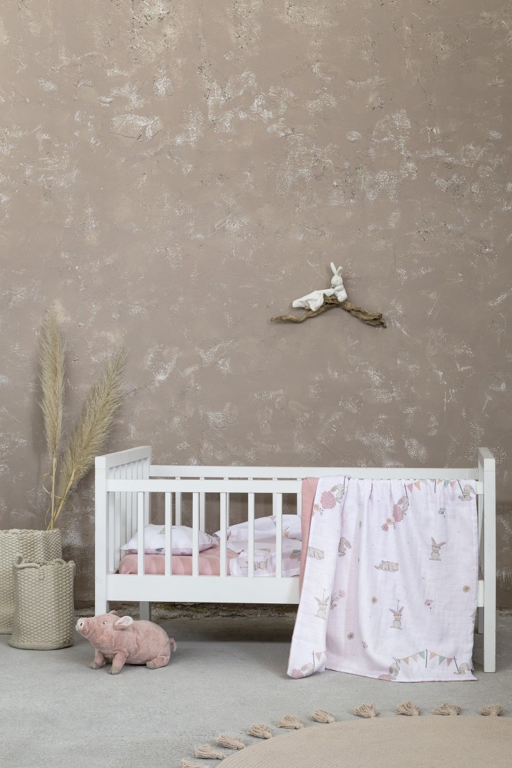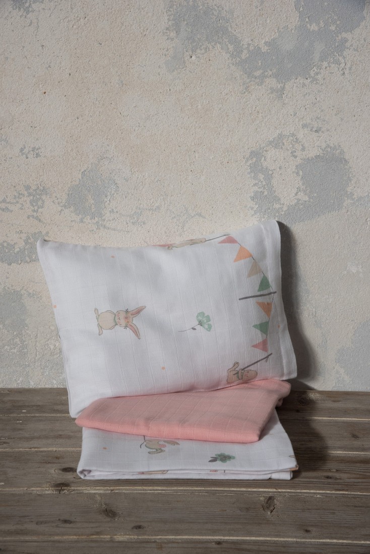 To σετ σεντόνια κούνιας και λίκνου Bunny Love θα χαρίσει μια γλυκιά, ρομαντική αισθητική στο βρεφικό δωμάτιο. Έχει πρωτότυπο τυπωτό σχέδιο με χαριτωμένα κουνελάκια και υπέροχες, φωτεινές αποχρώσεις ροζ και λευκού που θα αναδείξουν αμέσως την κούνια και το λίκνο του μωρού. Το μωράκι σας θα λατρέψει τα γλυκά κουνελάκια και θα μοιραστεί μαζί σας τον ενθουσιασμό του. Συνδυάστε το με ασορτί πάντα και κουβέρτα για την πιο όμορφη διακόσμηση στο βρεφικό δωμάτιο.