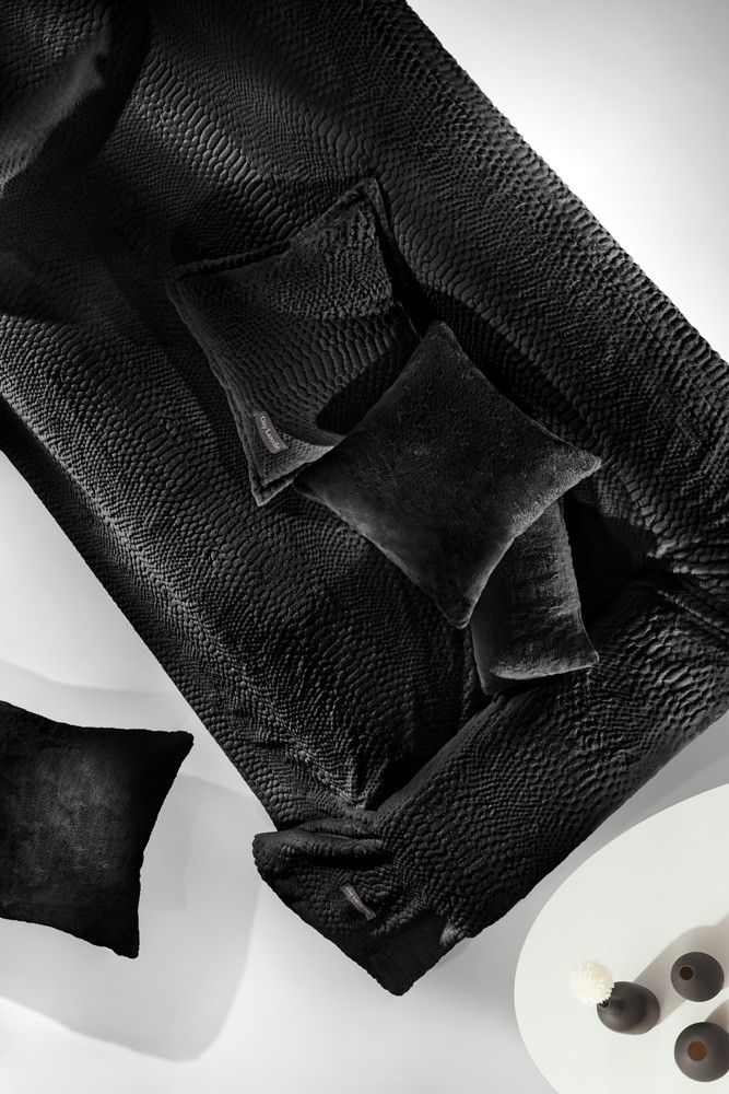 Σετ γούνινο ριχτάρι για τον μονοθέσιο καναπέ και διακοσμητικό μαξιλάρι από την εταιρεία Guy Laroche. Είναι κατασκευασμένα από 100% polyester οικολογική γούνα που προσφέρει πολύ απαλή υφή. Έχουν ανάγλυφο ζακάρ σχέδιο animal  snake skin. και μαύρο  χρώμα. Αποτελούν ένα υπέροχο σετ για το σαλόνι, καθώς διακοσμούν τον καναπέ δίνοντας ένα ζεστό χειμωνιάτικο ύφος.