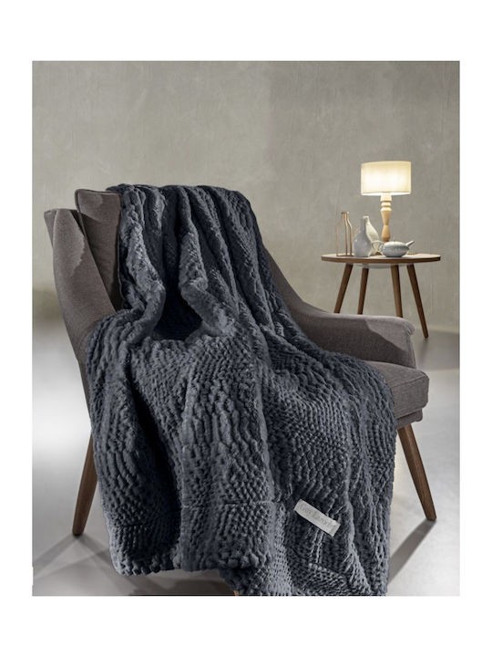 Γούνινο Ριχτάρι μονοθέσιου Καναπέ Crusty Carbon 170x300cm με Μαξιλαροθήκη Guy Laroche