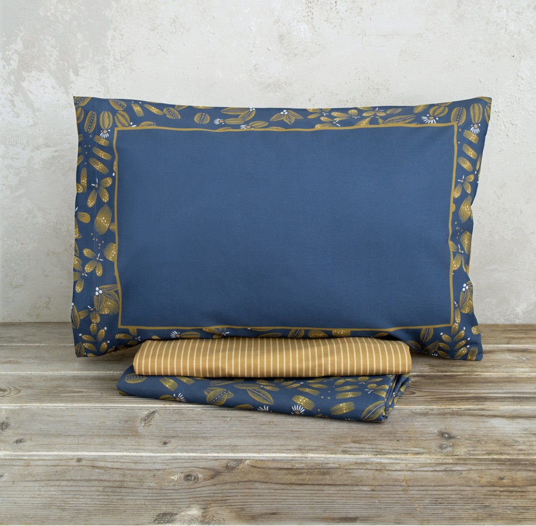 Τα βαμβακερά σεντόνια Idyllic συνδυάζουν τις αποχρώσεις του μπλε και του ζεστού καφέ σε ένα σχέδιο που αποτυπώνει τη μεσογειακή φύση σαν έργο τέχνης.Οι πάνελ μαξιλαροθήκες του με την όμορφη συμμετρία τους αναδεικνύουν και αναβαθμίζουν την αισθητική όλου του σετ. Δημιουργούν μια οικεία αίσθηση που μας ταξιδεύει στην πλούσια μεσογειακή φύση, στα χρώματα και τις μυρωδιές του Καλοκαιριού. Θα γίνουν το επίκεντρο του υπνοδωματίου και θα του χαρίσουν ένα καλαίσθητο Mediterranean ύφος. Επιλέξτε τα για να δημιουργήσετε καλοκαιρινή, χαλαρή αίσθηση στο χώρο.