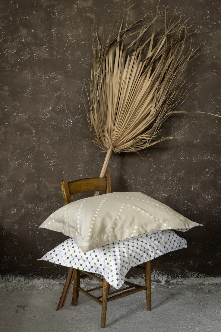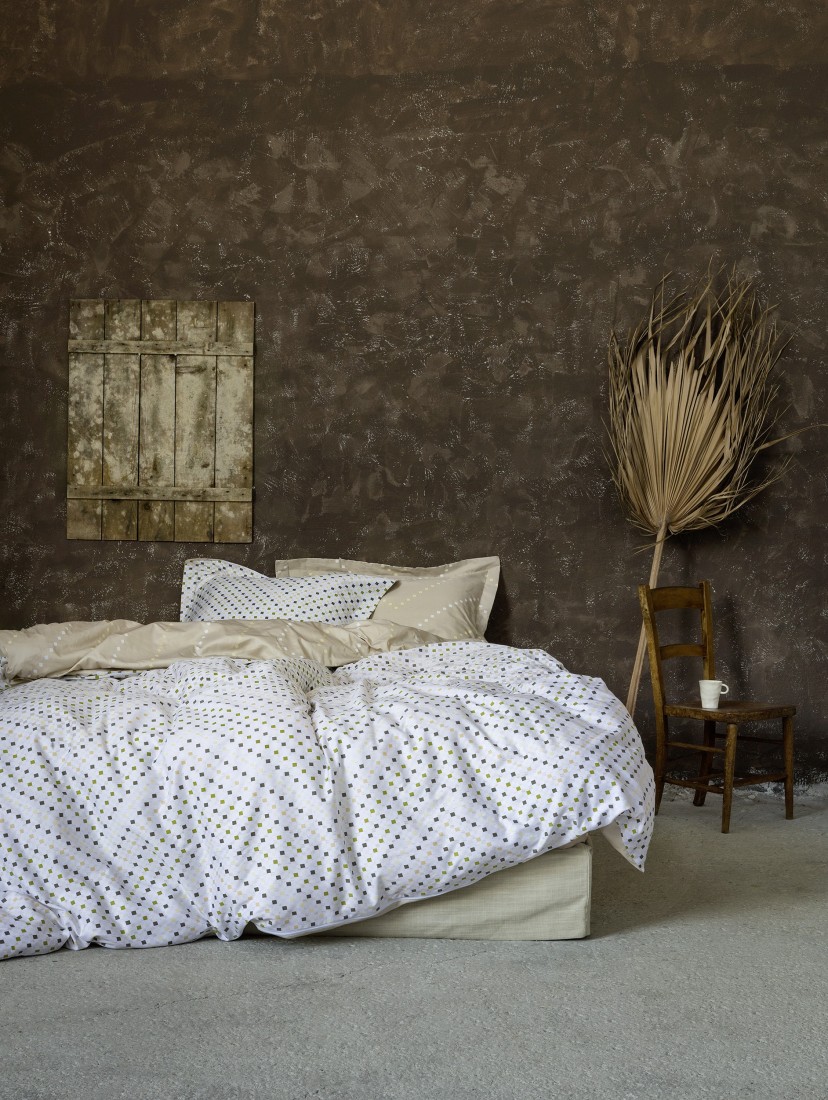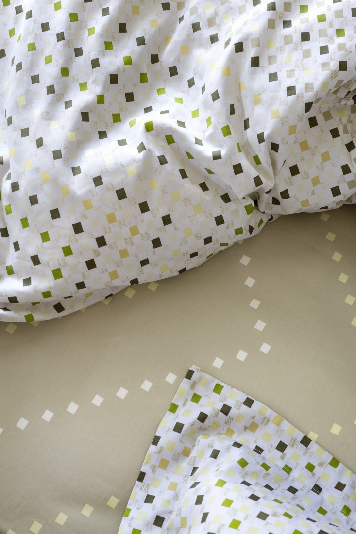 Τα βαμβακοσατέν σεντόνια Requiem με γεωμετρικό μοτίβο σε γίηνες αποχρώσεις του πράσινου και του μπεζ, εμπνευσμένες από την ανοιξιάτικη φύση, φέρνουν μια ευχάριστη και χαλαρωτική διάθεση στον χώρο του υπνοδωματίου. Λιτές και απέριττες πινελιές χρώματος σε μια σύγχρονη αισθητική άποψη, που προσαρμόζεται εύκολα σε κάθε ύφος διακόσμησης, σε ένα ποιοτικό σετ σεντονιών που θα ξεχωρίσει και θα δώσει χαρακτήρα στο υπνοδωμάτιο.