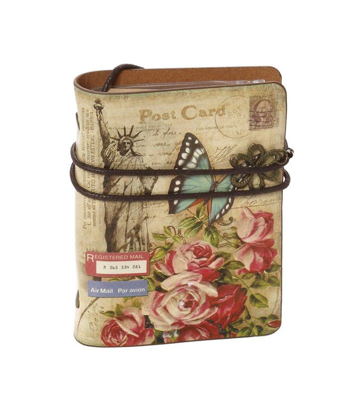 Σημειωματάριο μπεζ χρώματος με διακοσμητικό σχέδιο πεταλούδας και λουλουδιών.