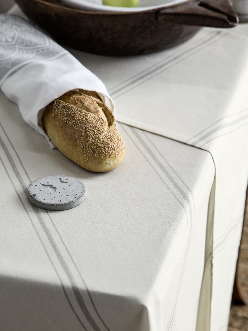 Το τραπεζομάντηλο Minimέχει ουδέτερο εκρού χρώμα με μίνιμαλ ριγέ γκρι μοτίβο. Η εξαιρετική ποιότητα κατασκευής και το διαχρονικό σχέδιό του θα το κρατήσουν στο τραπέζι μας για αρκετά χρόνια. Χάρη στα φωτεινά και ουδέτερα χρώματά του είναι πολύ εύκολο να ταιριάξει με διαφορετικούς τύπους διακόσμησης και υλικών, όπως για παράδειγμα το ξύλο, το γυαλί, το μέταλλο ή το μοντέρνο τσιμέντο, φέρνοντας μια εικόνα ανεπιτήδευτης αισθητικής στο χώρο.