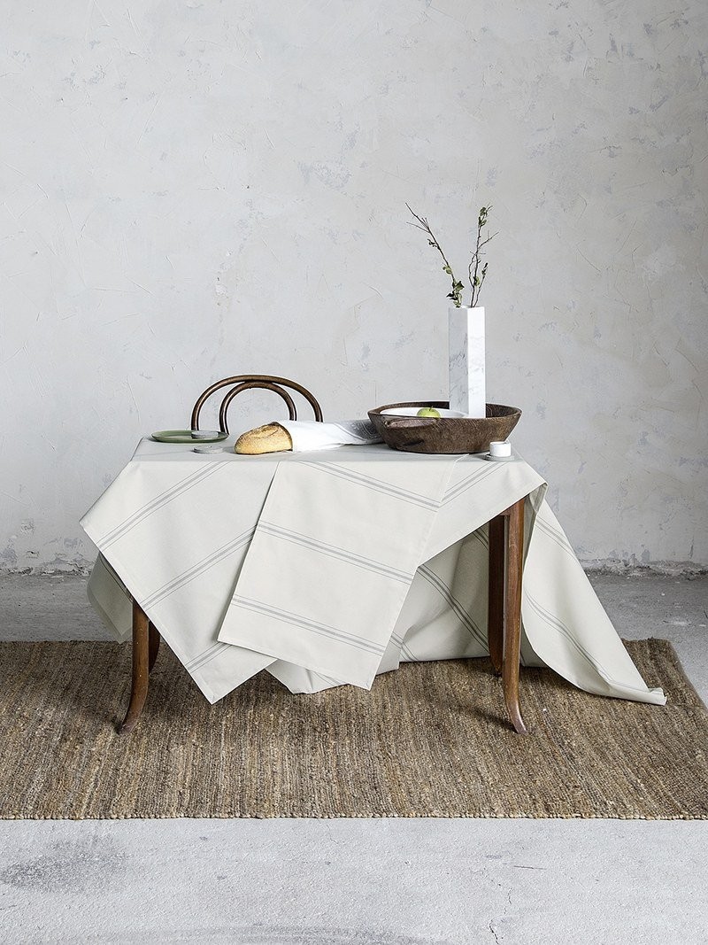 Το τραπεζομάντηλο Minimέχει ουδέτερο εκρού χρώμα με μίνιμαλ ριγέ γκρι μοτίβο. Η εξαιρετική ποιότητα κατασκευής και το διαχρονικό σχέδιό του θα το κρατήσουν στο τραπέζι μας για αρκετά χρόνια. Χάρη στα φωτεινά και ουδέτερα χρώματά του είναι πολύ εύκολο να ταιριάξει με διαφορετικούς τύπους διακόσμησης και υλικών, όπως για παράδειγμα το ξύλο, το γυαλί, το μέταλλο ή το μοντέρνο τσιμέντο, φέρνοντας μια εικόνα ανεπιτήδευτης αισθητικής στο χώρο.