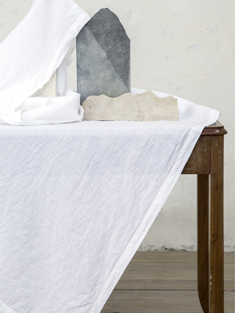 Τραπεζομάντηλο με σύνθεση από 90% λινό και 10% βαμβάκι 160gsm, δύο φυσικά υλικά με εξαιρετικά χαρακτηριστικά στα λευκά είδη. Συνδυάζει τη χαρακτηριστική πλούσια υφή και την ανθεκτικότητα του λινού με την απαλή, ελαφριά αίσθηση του βαμβακιού. Το ύφασμά του είναι προ-πλυμένο (prewashed) ώστε να διατηρεί το σχήμα του ακόμα και μετά από πολλές πλύσεις. Επιπλέον, ανήκει στην κατηγορία easy iron, που σημαίνει ότι σιδερώνεται εύκολα και γρήγορα. Απλώνεται ομοιόμορφα στο τραπέζι και δημιουργεί αέρινες πτυχώσεις με την υπέροχη υφή του λινού.